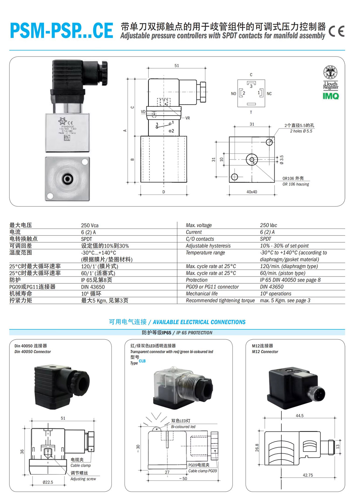 CE series suitable for CETOP mounting both with DIN43650 PG09 connector,