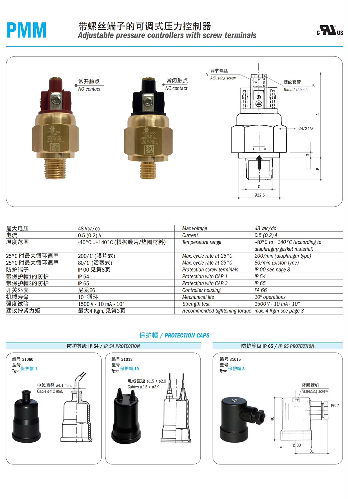 Temperature range -40°C...+140°C.NO/NC contacts,