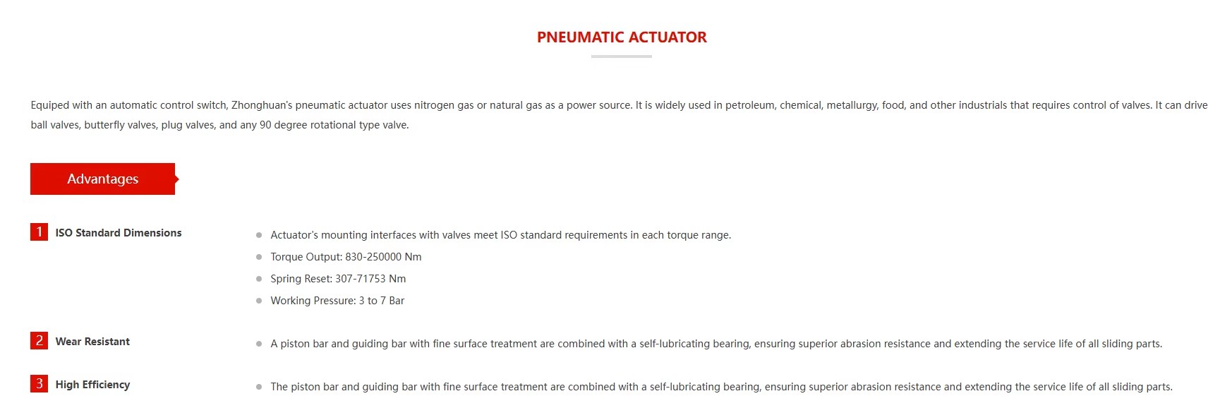 Pneumatic Actuator Oilfield ISO Certificate Compliant CE High Efficiency Explosion-proof Level Ex d IIC T6 Corrosion Resistant