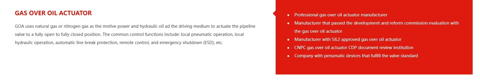 Gas Over Oil Actuator Oilfield Durable ISO Certificate Compliant CE High Efficiency Explosion-proof Level Ex d IIB IIC T4 IP65